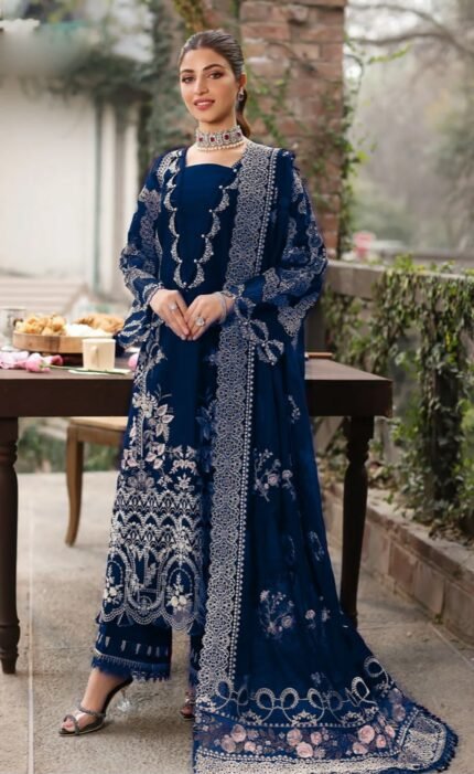 Aneela’s – 3pcs Luxury Emb With Ready To Wear Khaadi Net Dupatta – 394