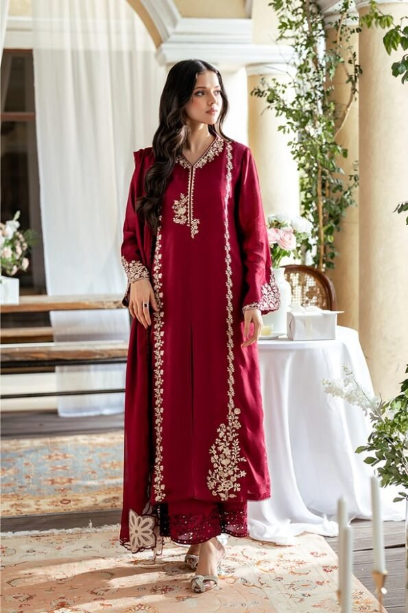 Chrimson – 3pcs Chicken Kari Lawn With Ready To Wear Dupatta – 7318