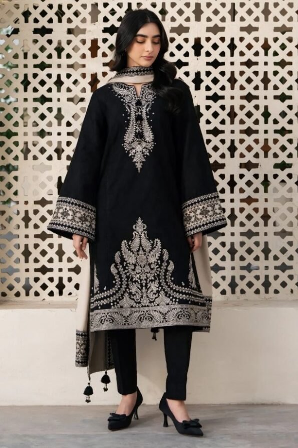 Jazmin – 3pcs Lawn Emb With Ready To Wear Chiffon Emb Dupatta – Black